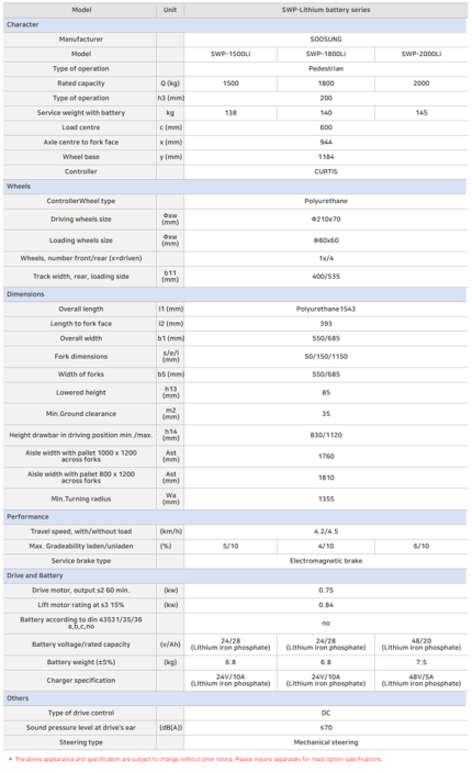 The SWP series ranges from small businesses to large-scale distribution centers. The electric pallet truck you need in any warehouse. Various lineups based on payload It guarantees the best workability with reasonable price and excellent performance.